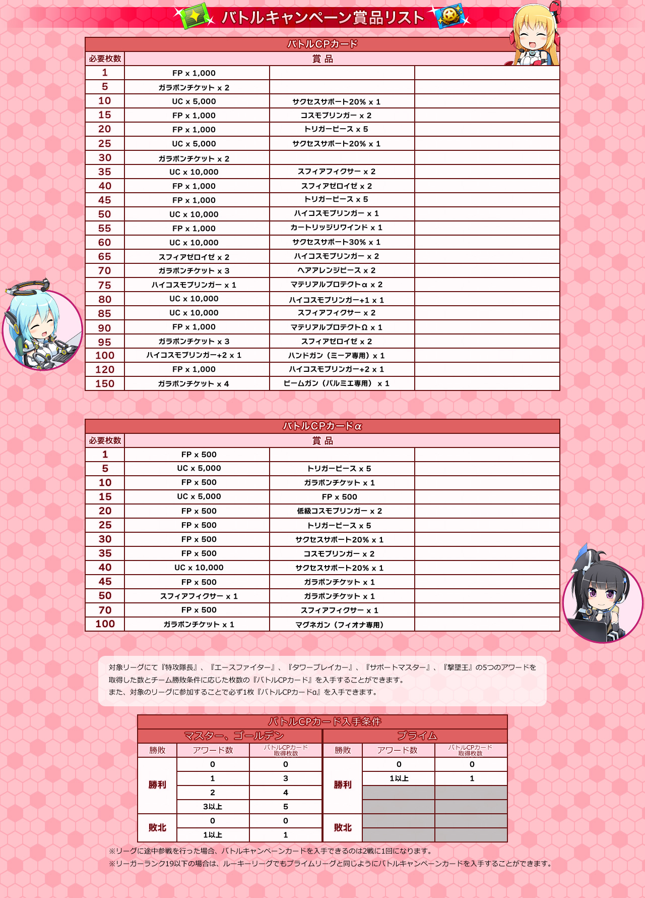 また、いずれかのリーグに参加することで必ず1枚の『バトルCP カードα』が入手できます。