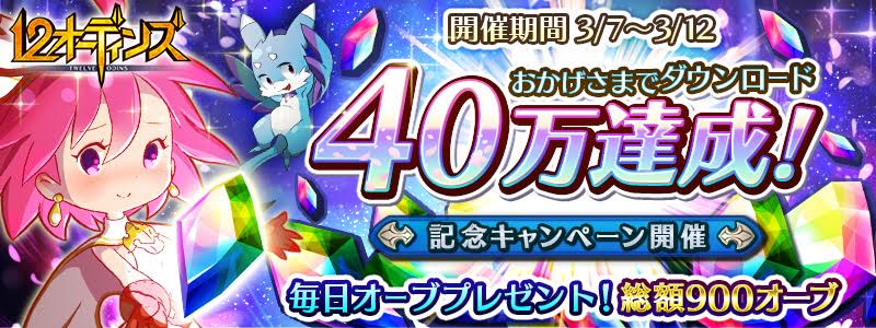 みんなで×つなげるバトルRPG「12オーディンズ」40万ダウンロード突破!!